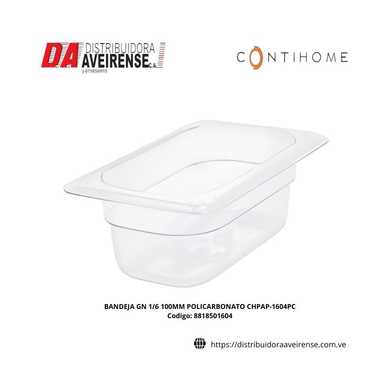 BANDEJA GN 1/6 100MM POLICARBONATO CHPAP-1604PC.